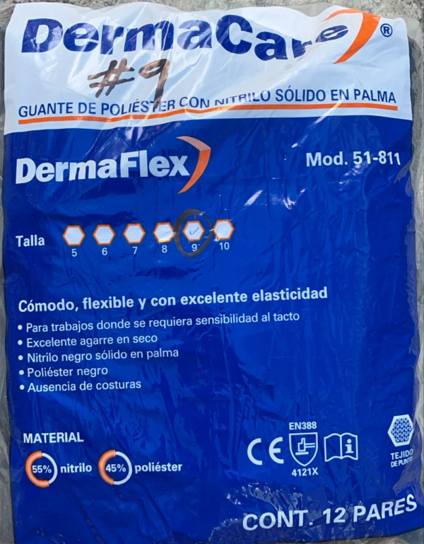 Guante nitrilo DERMACARE #9 NEGRO/MARRON